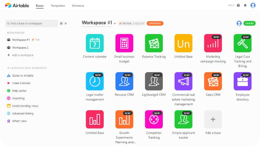 Airtable은 스프레드시트와 유사한 화면을 제공하기 때문에 처음 사용하는 사용자도 쉽게 적응할 수 있습니다.